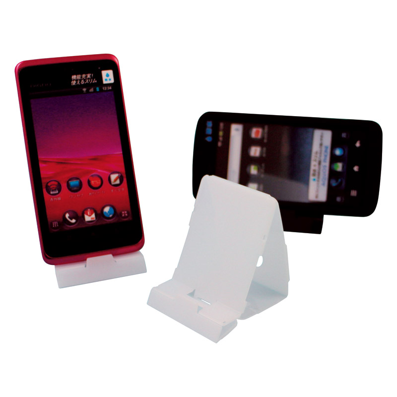 縦・横どちらでも置ける組立式スマートフォンスタンド。メガネや時計も置くことができます。