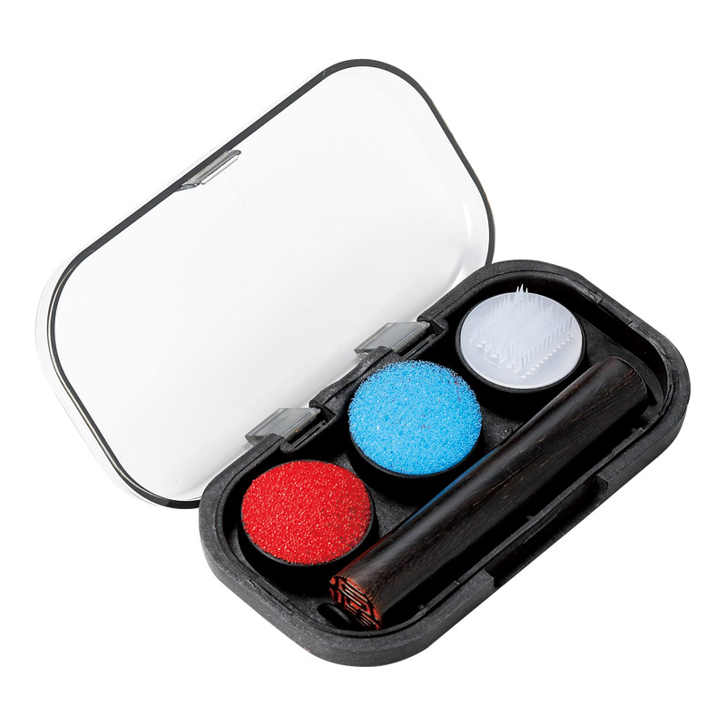 環境に優しいバイオマスプラスチックを使用したエコロジー印章ケースです。朱肉、スポンジ、ブラシの付いた可愛いケースにお手持ちの印鑑がスマートに収まります。