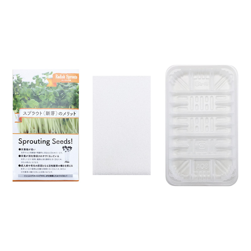 | コピー | スプラウトとは、発芽直後の植物の新芽のことで、発芽野菜のことを指します。栽培期間は約10日間。かいわれ大根・ブロッコリースプラウトのアソートです。 |