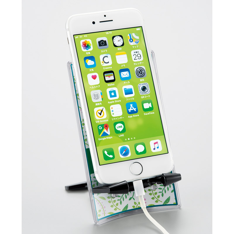 充電しながら使える便利なモバイルスタンド。コンパクトにたためて、持ち歩きにも便利。