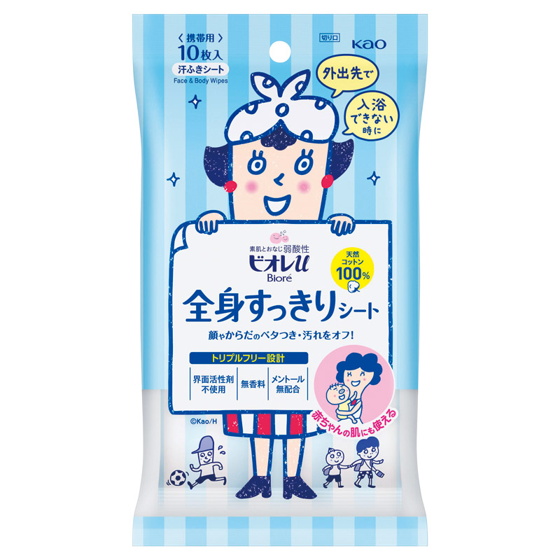 親子で使える全身ふきとりシート。肌荒れ・あせもの原因にもなる汗・皮脂・汚れをスッキリ。