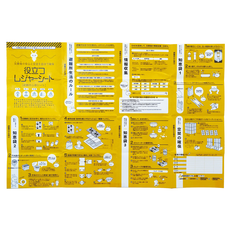 災害時の避難所生活の心得や役に立つ情報をプリント。