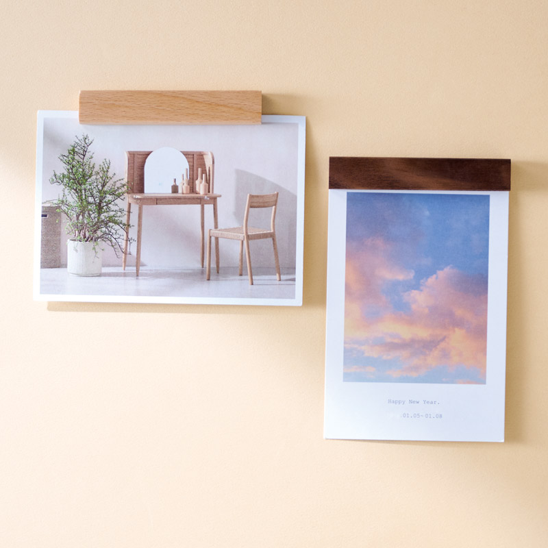 木目が美しいマグネットバー。強力なネオジム磁石を使っており、コピー用紙を複数枚挟んでも大丈夫。