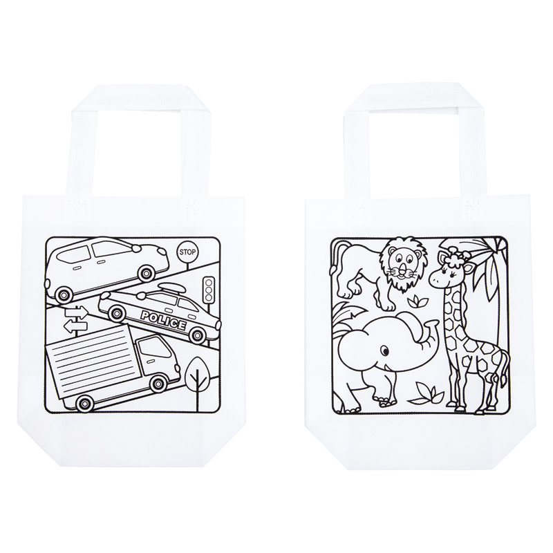 6色クレヨンとぬり絵で遊べるトートバッグのセットです。底マチ8㎝。
