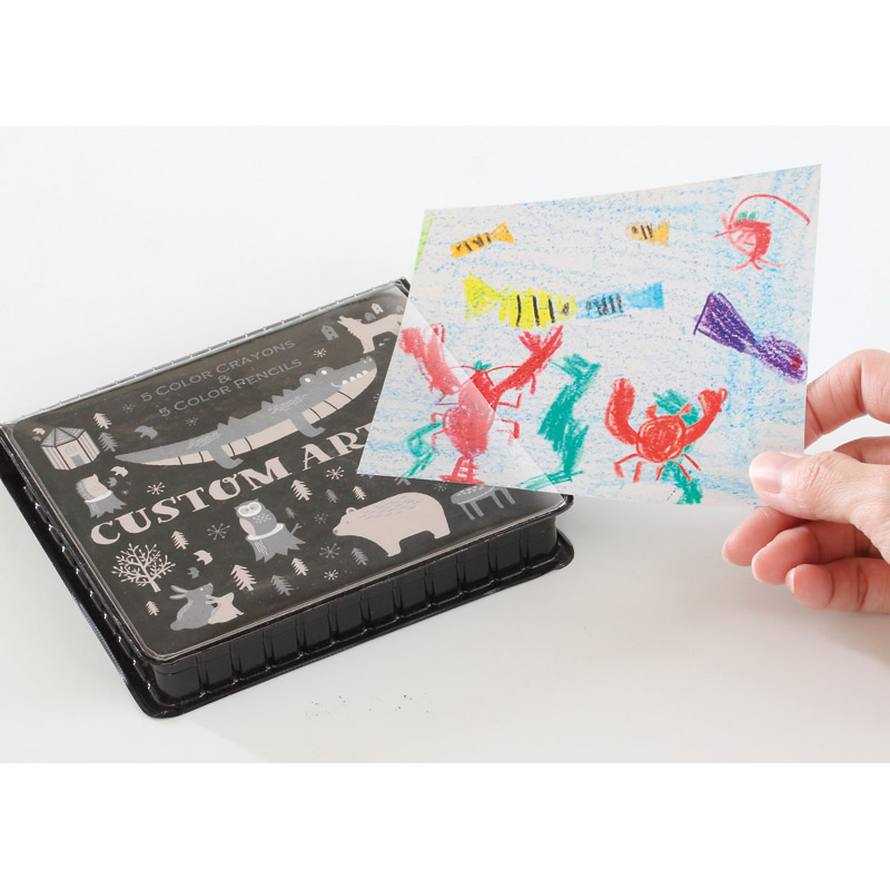 自分で描いた絵を差し込み、世界で一つだけのアートセットが出来るかわいいお絵かきセット。
