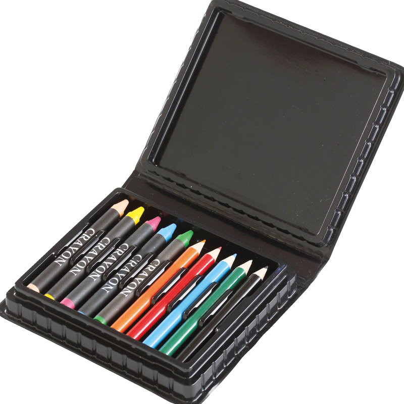 ケース(約117×134×21㎜)×1、クレヨン・色鉛筆×各5