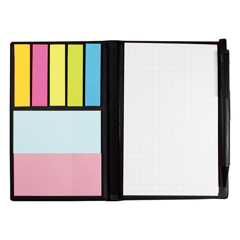 本体(約130×90×12㎜)・メモ(70枚)・ペン×各1、付箋(中)(25枚)×2、インデックス付箋(25枚)×5