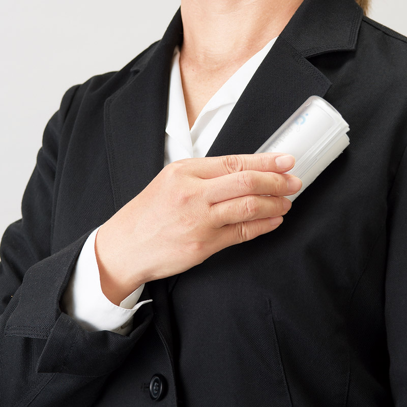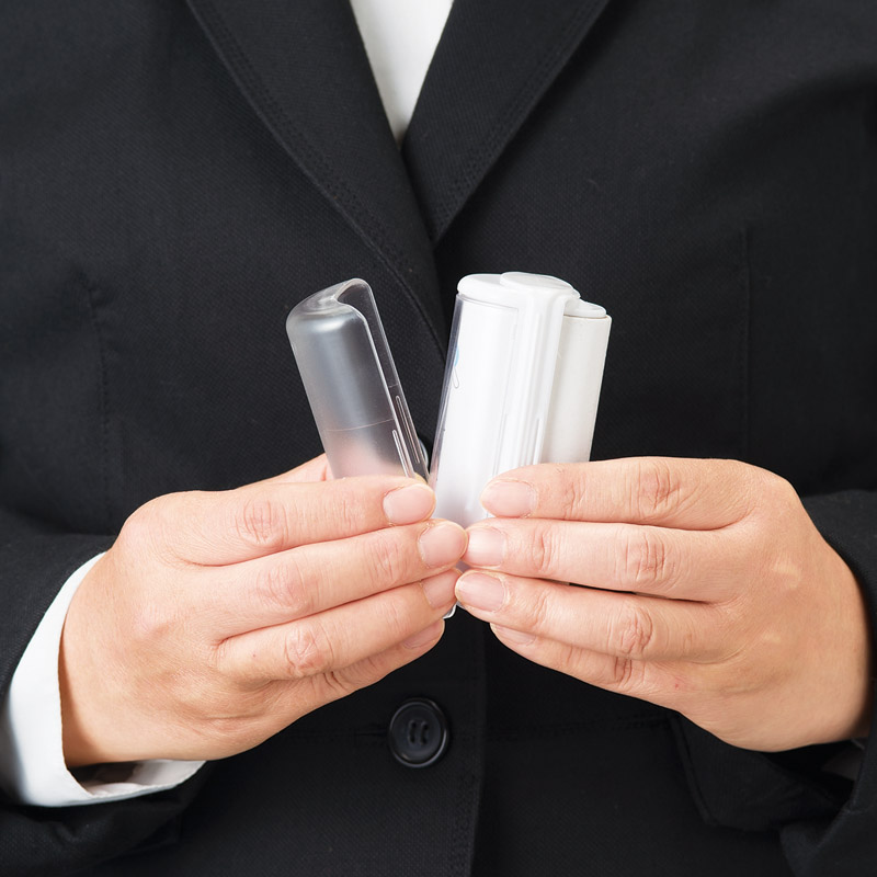 洋服に付いた髪の毛、ペットの毛、花粉、ほこり取りに。外出先で、取り忘れたペットの毛など取り除く際に。バッグに邪魔なくしまえるコンパクト設計。