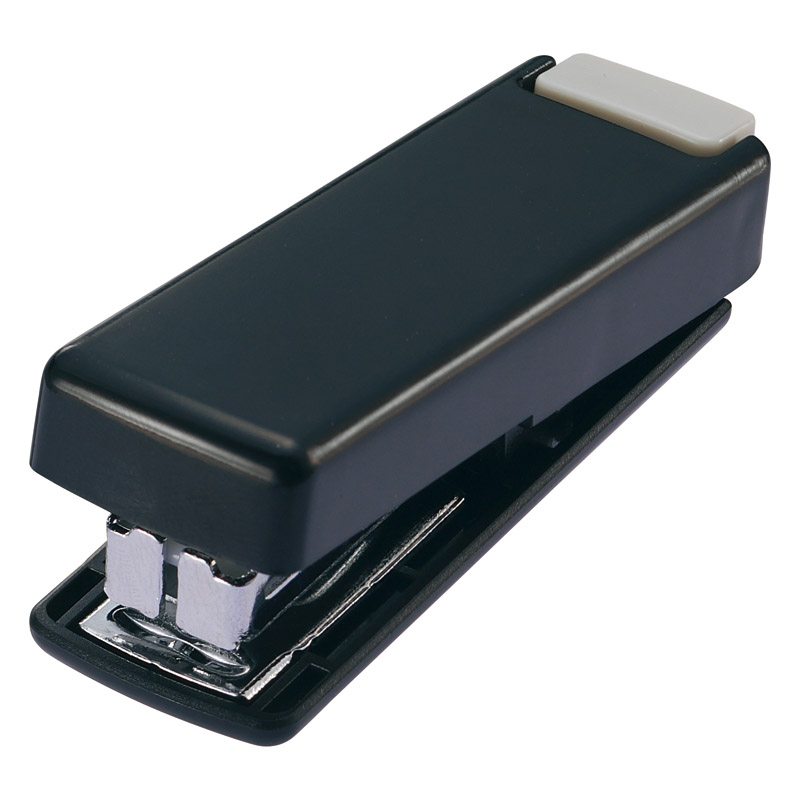 | コピー | コンパクトに折りたためてハンドルを開くと、すぐに使えます。ボタンを押して刃に触れずに収納できるので安心。とじ枚数:コピー用紙10枚、使用針:10号(装填済み)。 |