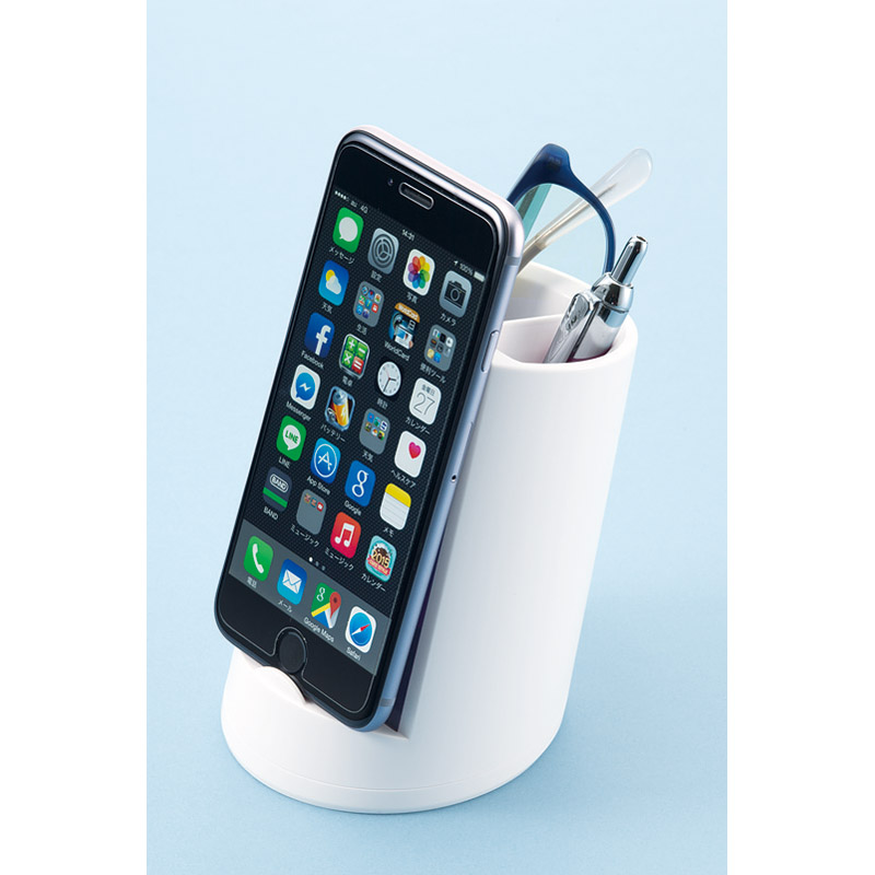 身の回りの小物をすっきり収納。スマホスタンドと小物収納を一体化させました。