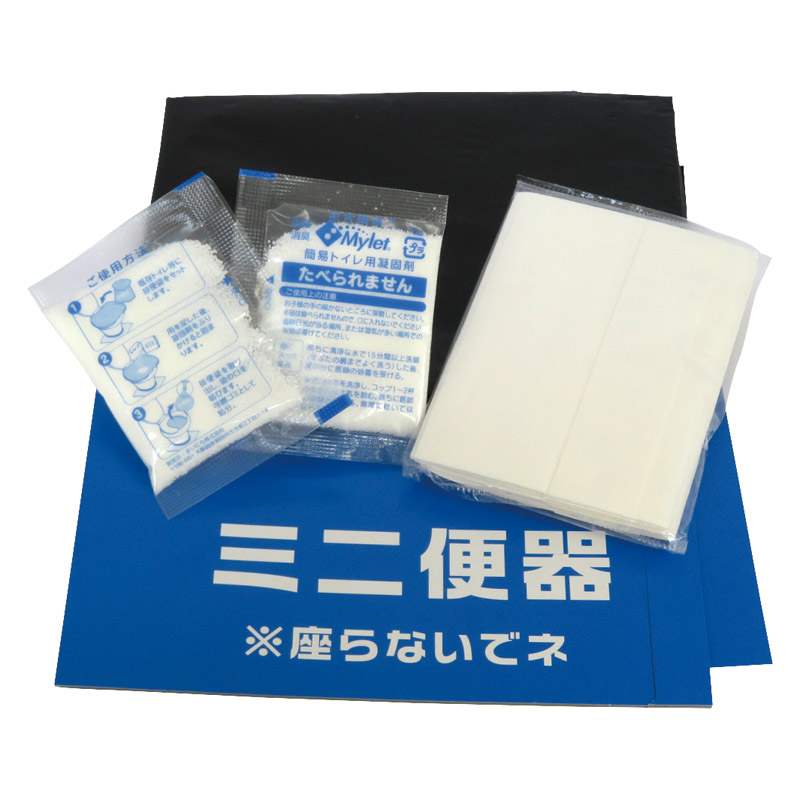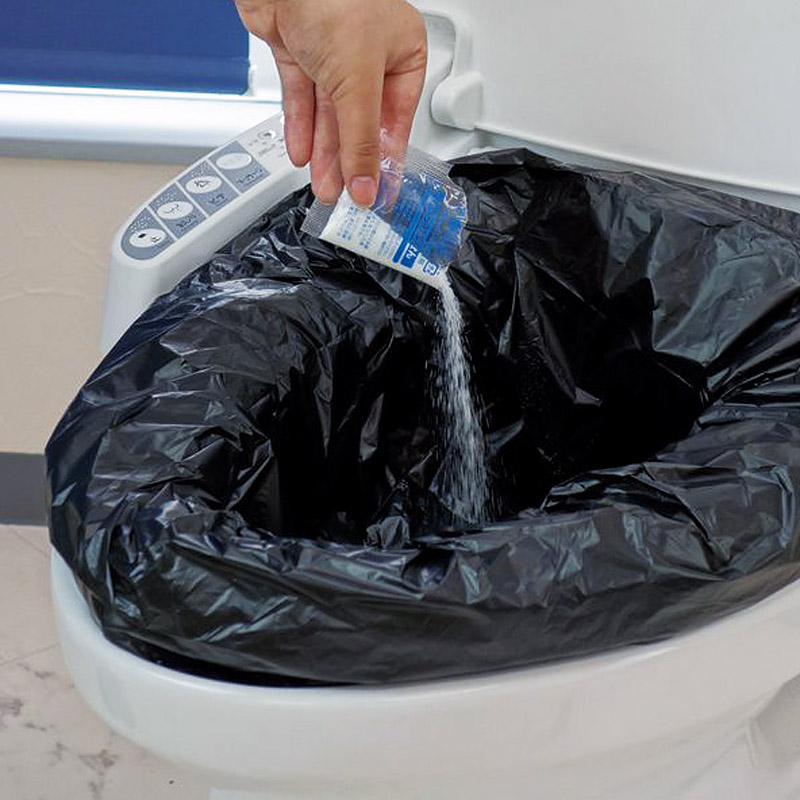 既存のトイレで使用可能。抗菌性凝固剤を使い汚物を固めて可燃ごみとして処理できるコンパクトで長期保存可能な災害用トイレ処理セットです。2回分入り。オリジナルパッケージ対応可能。
