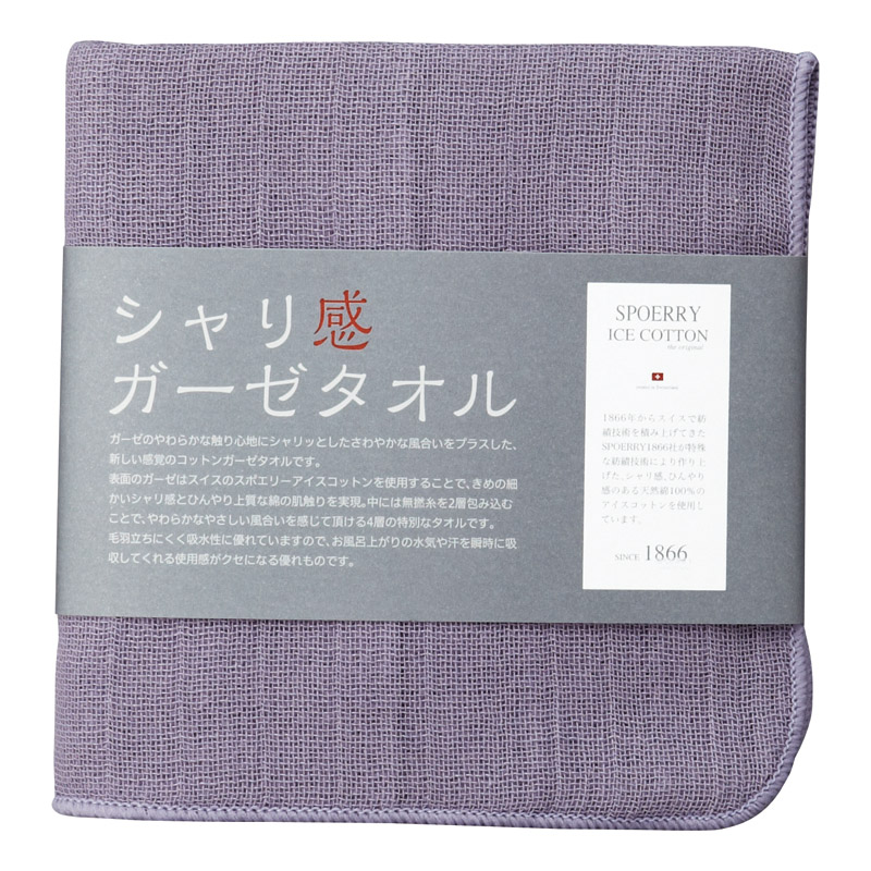 吸水性に優れ、清涼感があり、独特の使用感が楽しめます。スイスのスポエリーアイスコットン®を使用した、夏場にお勧めのシャリ感ガーゼタオルです。