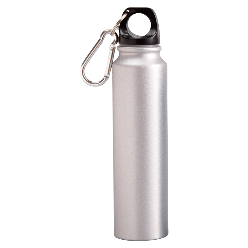 カバンの中で場所を取らないスリムなアルミボトル。携帯に便利なカラビナ付き。