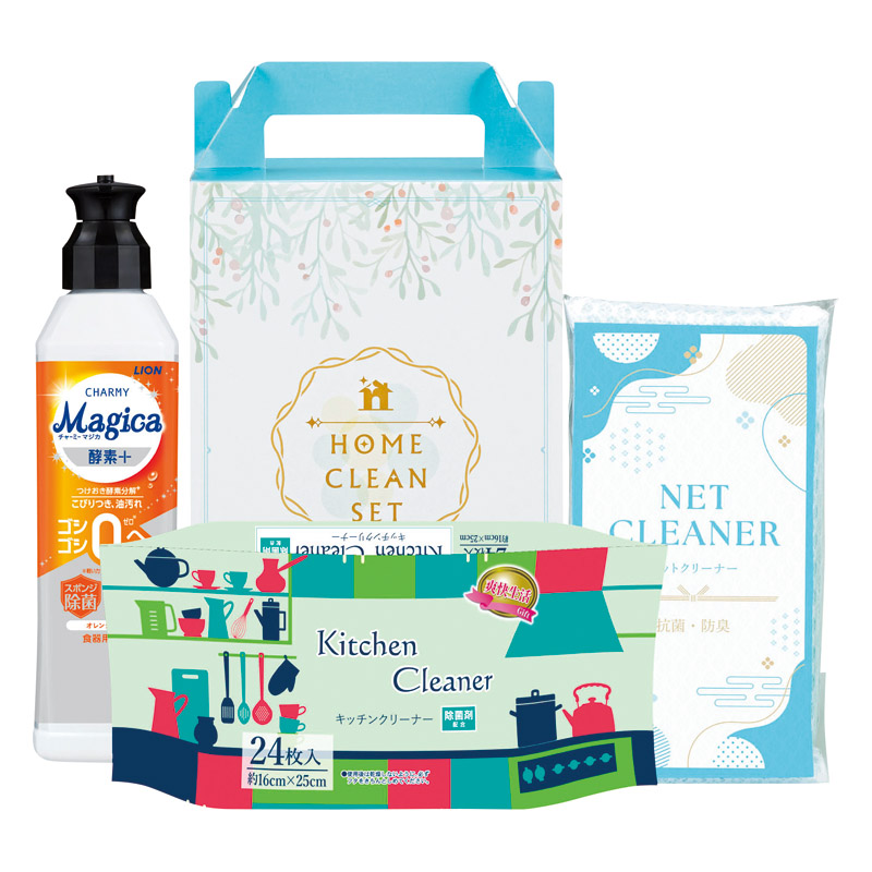 ライオンチャーミーマジカ酵素プラスオレンジの香り(220ml)・キッチンクリーナー(24枚)・ネットクリーナー(1P)×各1
