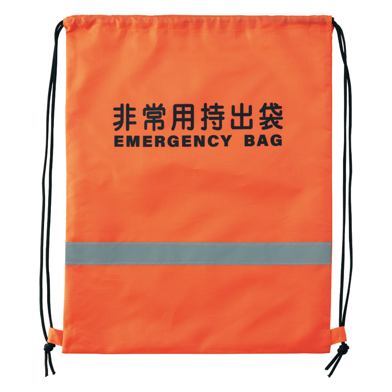 反射テープ付の非常用持出袋です。目立つオレンジ色。