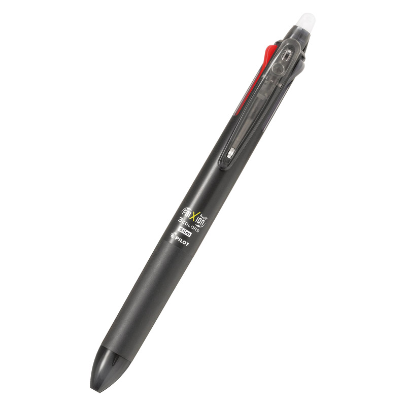 | コピー | フリクションインキ搭載のスライドレバー式3色ボールペン。限界設計で実現した最大径φ12.8㎜のスリムな軸径。段差のないグリップは手帳のペンホルダーにも差しやすい形状になっております。 |