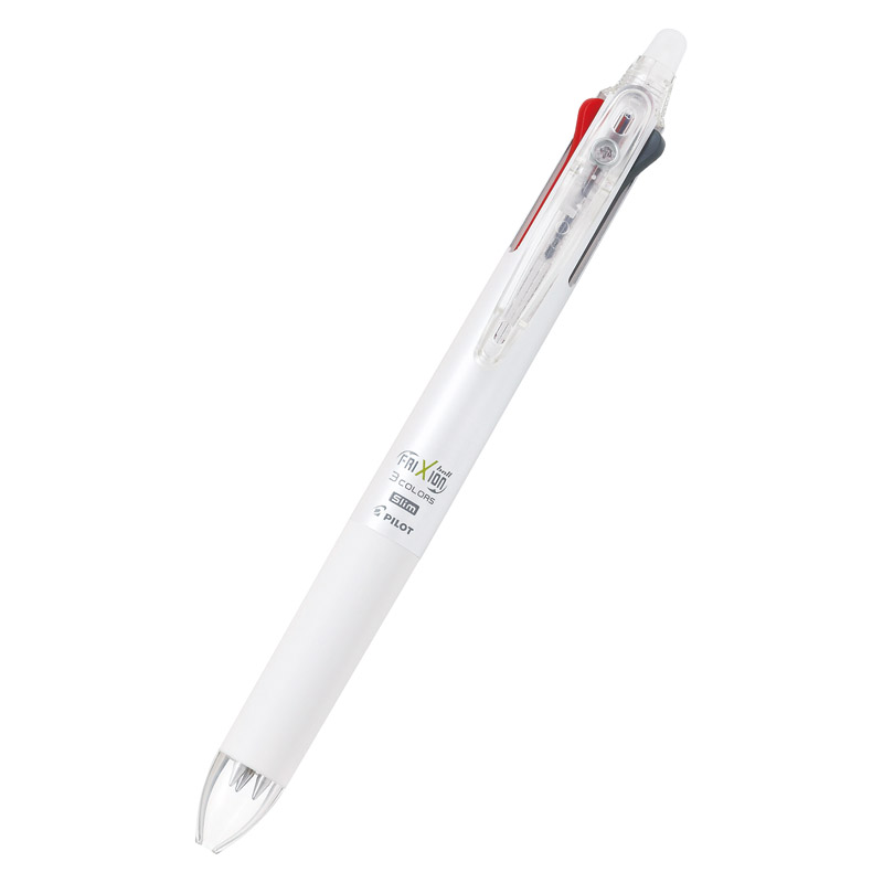 | コピー | フリクションインキ搭載のスライドレバー式3色ボールペン。限界設計で実現した最大径φ12.8㎜のスリムな軸径。段差のないグリップは手帳のペンホルダーにも差しやすい形状になっております。 |