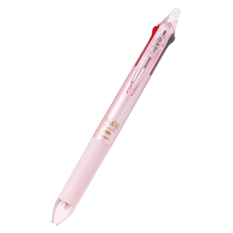 | コピー | フリクションインキ搭載のスライドレバー式3色ボールペン。限界設計で実現した最大径φ12.8㎜のスリムな軸径。段差のないグリップは手帳のペンホルダーにも差しやすい形状になっております。 |