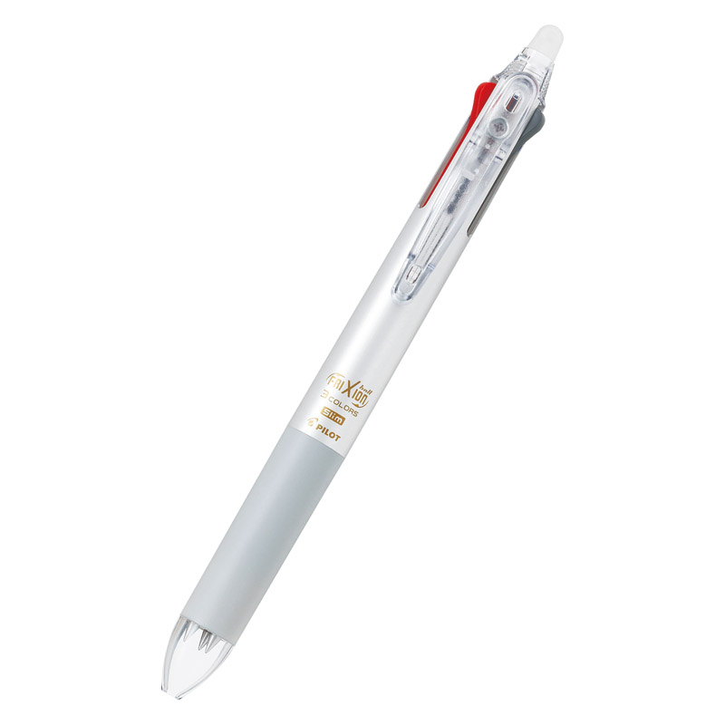 | コピー | フリクションインキ搭載のスライドレバー式3色ボールペン。限界設計で実現した最大径φ12.8㎜のスリムな軸径。段差のないグリップは手帳のペンホルダーにも差しやすい形状になっております。 |