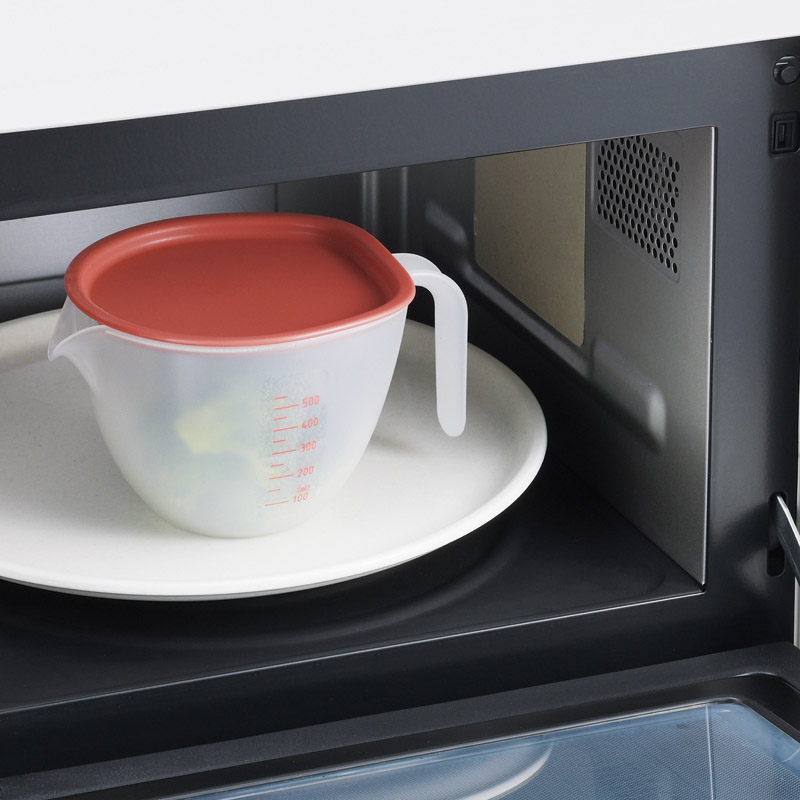 使いやすい工夫がいっぱい詰まったフタ付きの調理ボウルです。注ぎ口は、液だれしにくく注ぎやすさ抜群のこだわり形状。深型だから混ぜやすく、便利で見やすい目盛り付き。電子レンジ、食洗機使用可能。