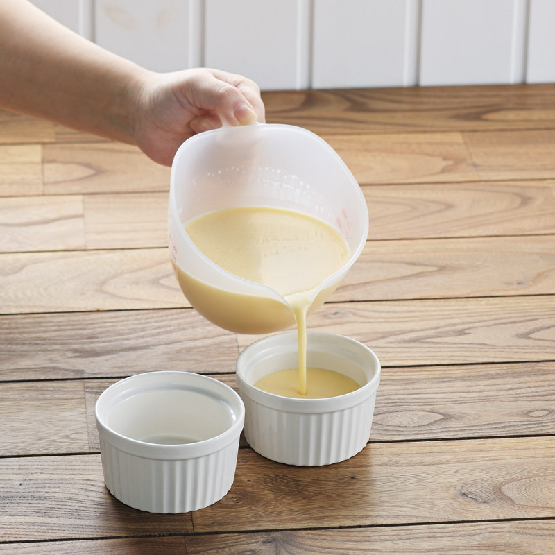使いやすい工夫がいっぱい詰まったフタ付きの調理ボウルです。注ぎ口は、液だれしにくく注ぎやすさ抜群のこだわり形状。深型だから混ぜやすく、便利で見やすい目盛り付き。電子レンジ、食洗機使用可能。