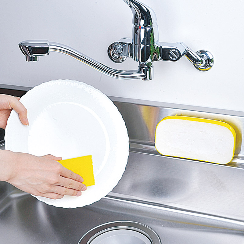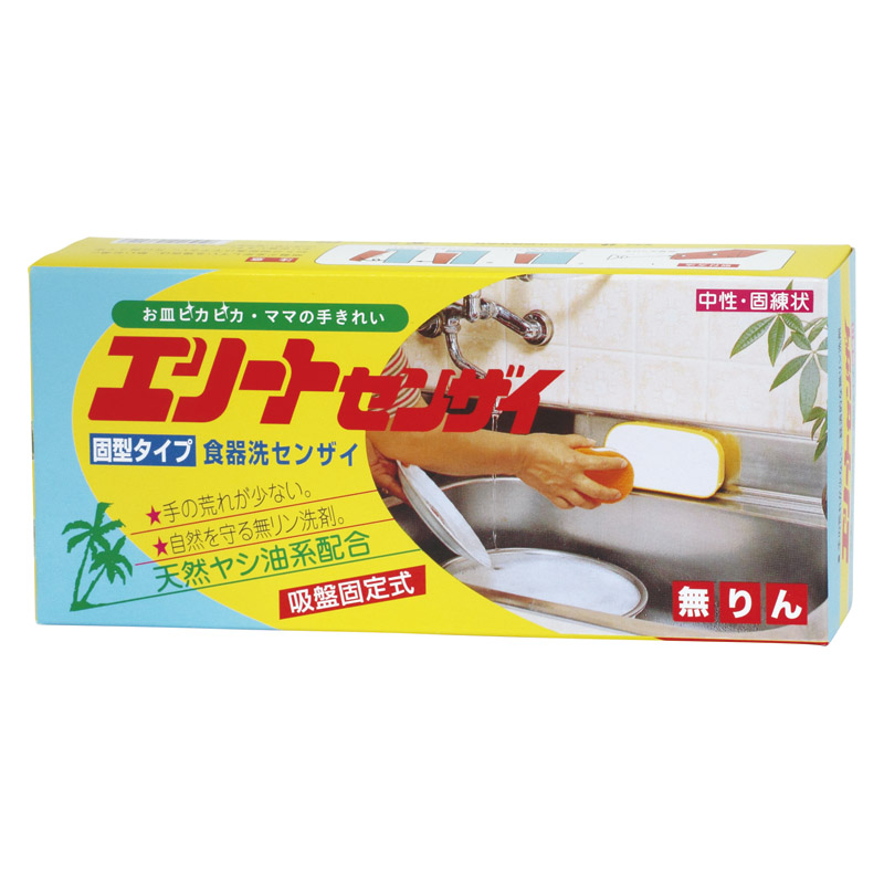 固形洗剤の表面をスポンジでサーッとなでるだけ。素早い泡切れで、頑固な油汚れも簡単に落ちます。天然ヤシ油系の界面活性剤を使用した手荒れが少ない固形洗剤です。