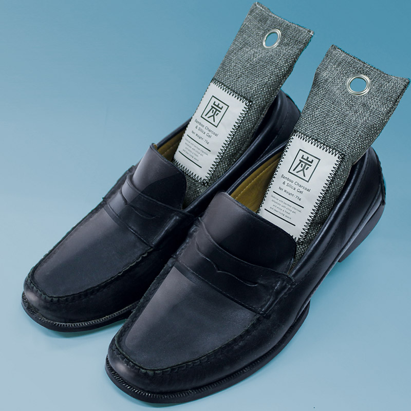 竹炭でイヤな臭いを脱臭し、清潔を保ちます。乾燥剤シリカゲルを配合し、しっかり除湿します。天日に干すだけで効果が回復し、繰り返しご使用いただけます。