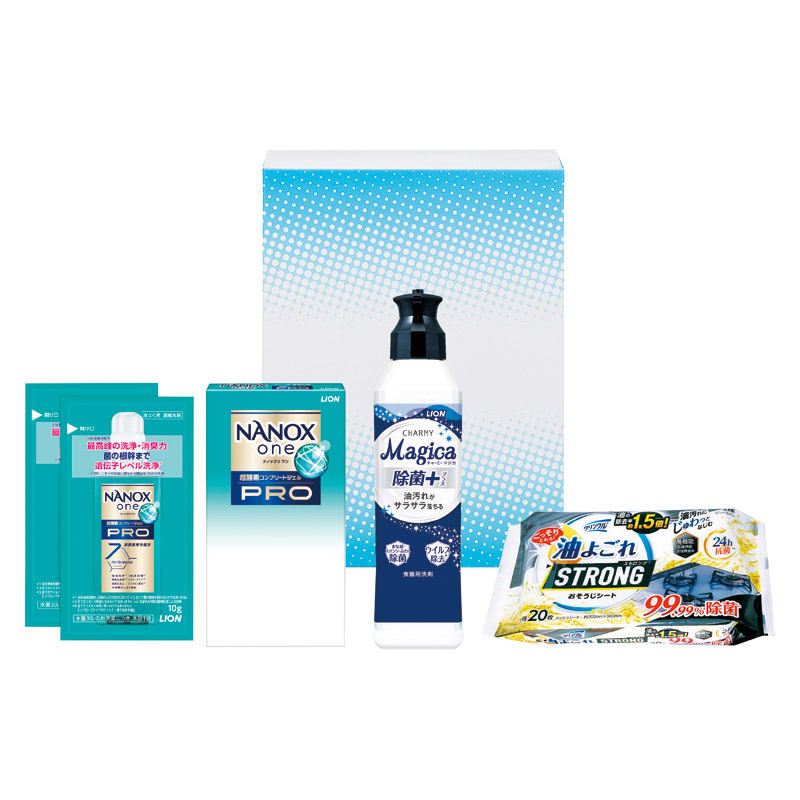 ライオンNANOXonePRO(10g×2)・ライオンチャーミーマジカ除菌+(プラス)(220ml)・クリンクル油よごれおそうじシート(20枚)×各1