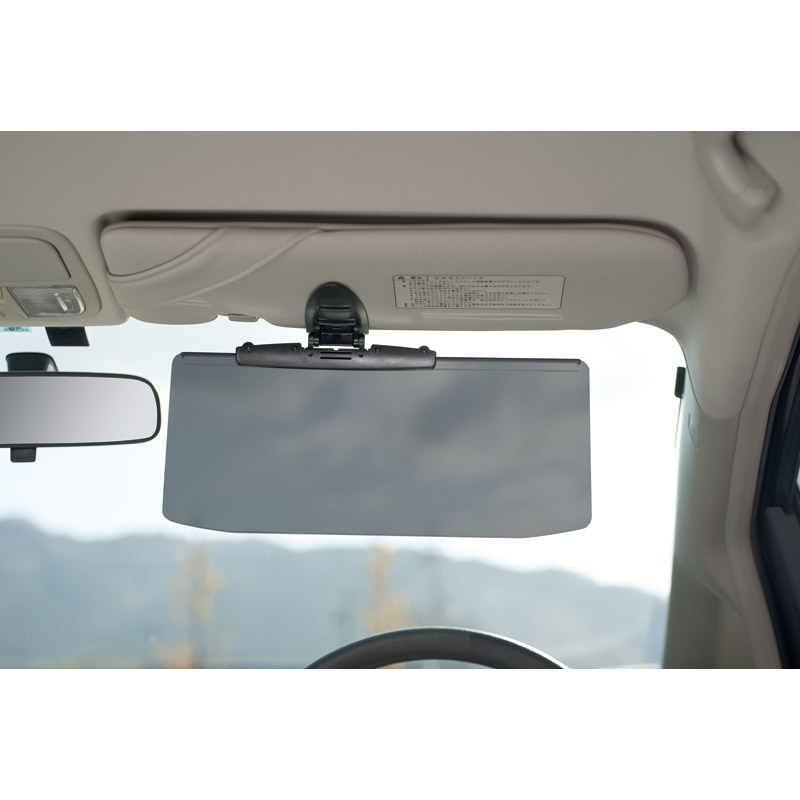 バニティミラーとの併用が可能。角度調節機能及び垂れ下がり防止機能付き。
