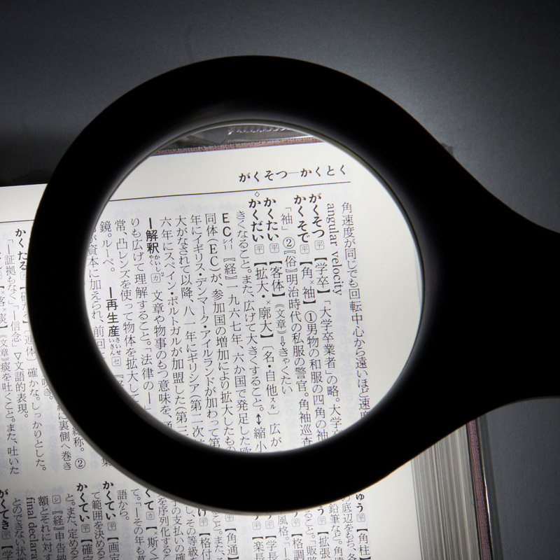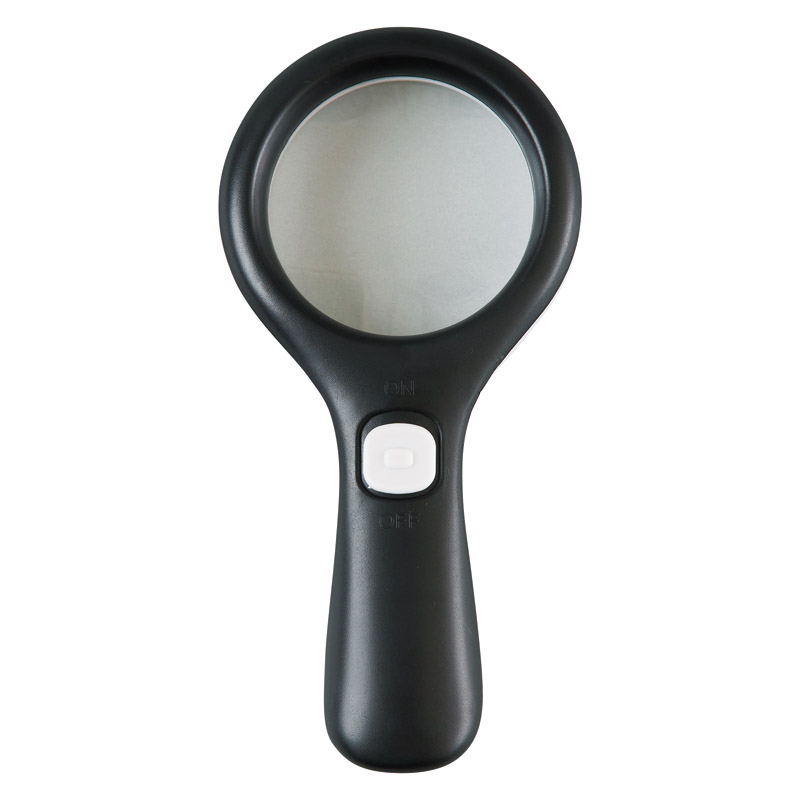 軽量アクリルレンズ。文字が見やすいLEDライト付。簡単操作のスライドスイッチ。