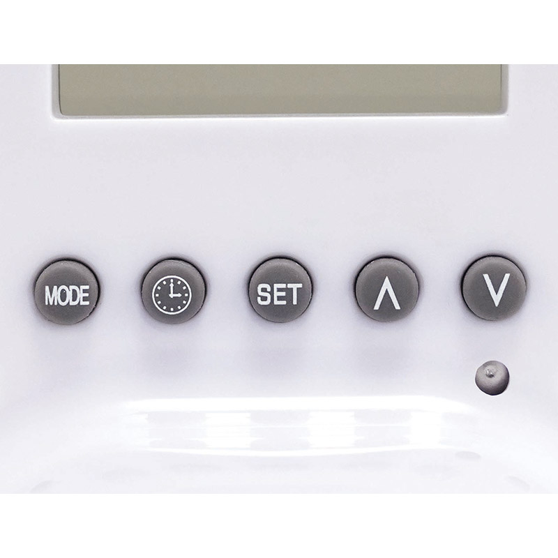 | コピー | 時刻が浮いて見える?ちょっと不思議な置時計。背面のボタンで時間やアラームをセット。お部屋になじむシースルーディスプレー。時刻・日付表示・アラーム・タイマー・温度計。 |