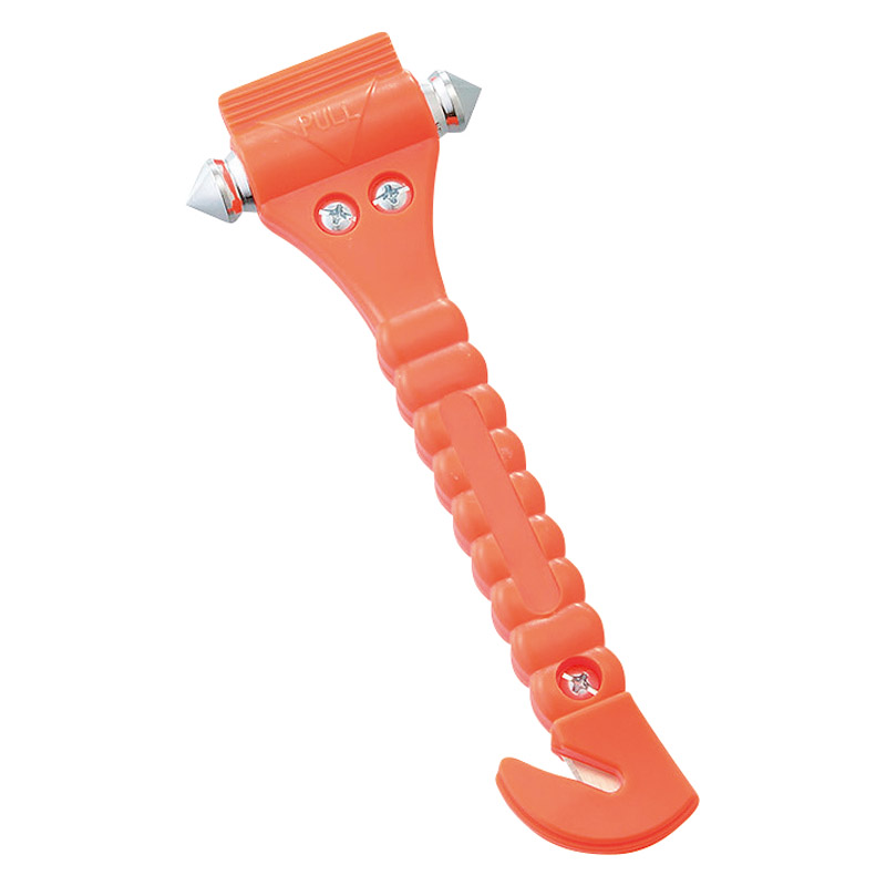 災害時や緊急時に自動車のガラスを破壊し脱出する為のハンマーです。シートベルトカッターも付いていてベルトロック時に使用できます。JIS-D5716製品規格適合品。