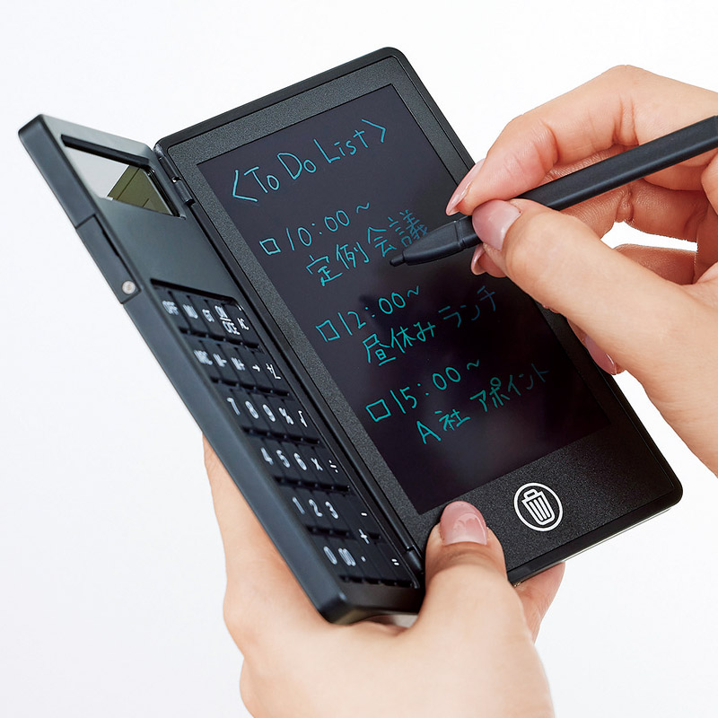 | コピー | 人気の電子メモに電卓が付いた高機能商品。持ち運び時は液晶部分が内側に折りたたまれるので、画面をキズ付ける心配がございません。 |