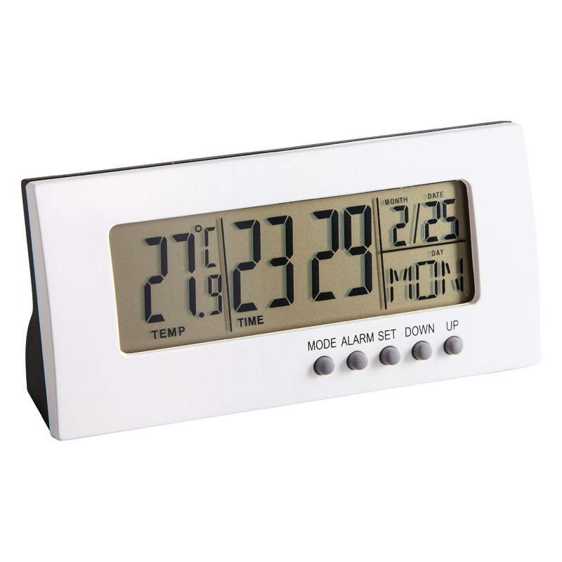 コンパクトボディに、見やすい大きな液晶画面。・100年カレンダー・スヌーズ付アラーム・タイマー・温度計