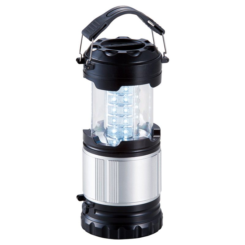 30個のLEDライト付のとても明るいランタン&ライトです。持ち手を2か所に付け替えられ、携帯も楽々でき、懐中電灯としても利用できます。