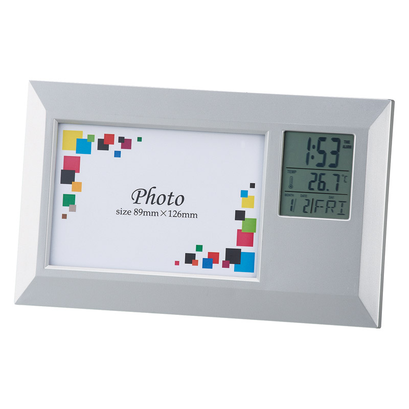 | コピー | デジタル多機能時計とフォトフレームが合体したデスクアクセサリーです。時計、アラーム、スヌーズ、温度計、カレンダー、カウントダウンタイマー、フォトフレーム。 |