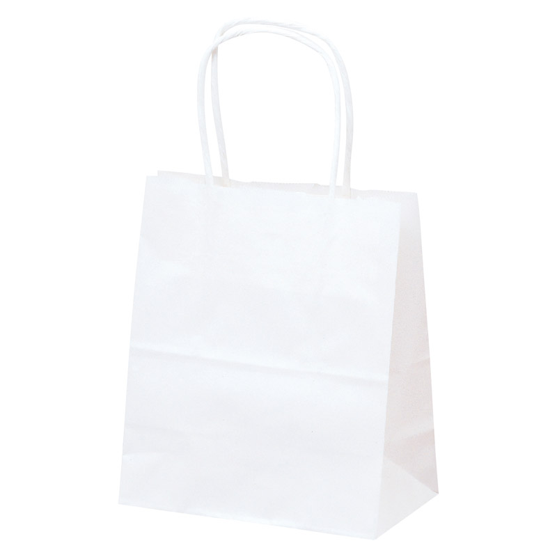 最もベーシックな無地の手提げバッグです。あらゆるシーンに利用できる定番の白無地。表面に艶のある片艶晒クラフト素材。