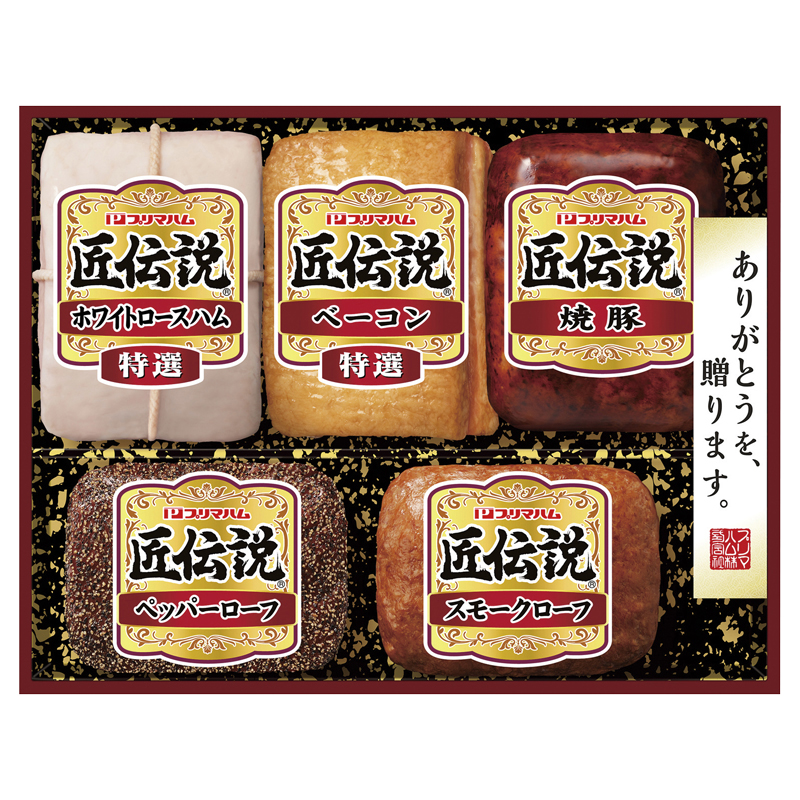 特選ホワイトロースハム(約360g)・特選ベーコン(約160g)・焼豚(約160g)・ペッパーローフ(約140g)・スモークローフ(約140g)×各1