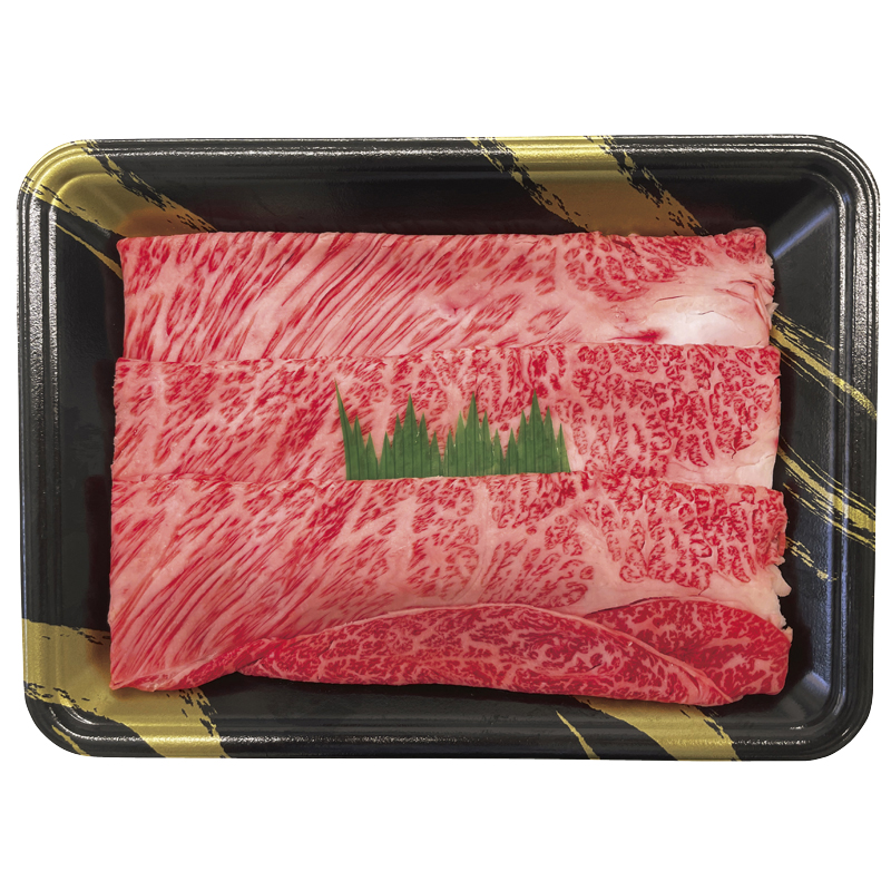 鹿児島のブランド牛「鹿児島黒牛」の霜降り肉(肩ロース)をすき焼用にスライスしました。