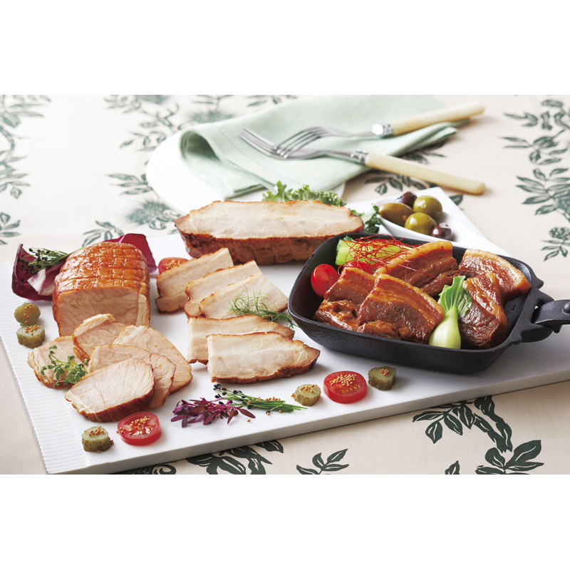 | 内容 | つるし焼豚(約170g)・ロース焼豚(約175g)・豚角煮(約180g)×各1 |