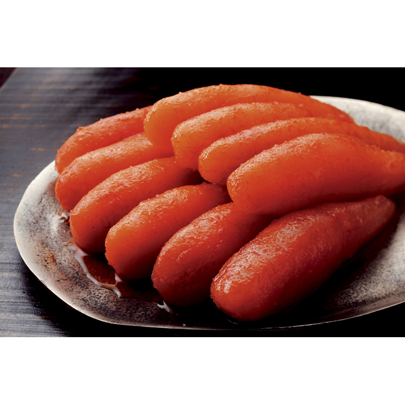 清酒や数種類の唐辛子、柚子胡椒などを使った当社独自の調味液に、新鮮なたらこをじっくりと漬け込みました。ぴりっとした辛さのなかにも深い味わいとコクのある辛子明太子。
