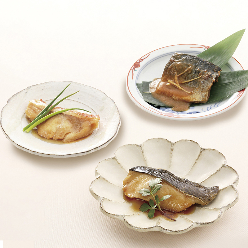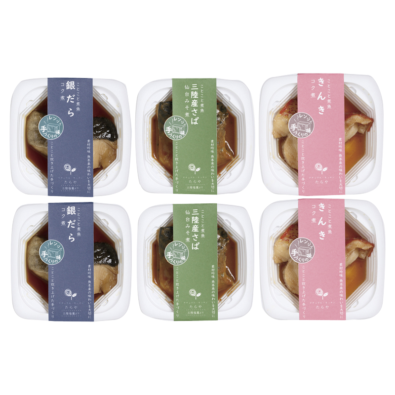 | 内容 | 銀だらコク煮(約50g)・きんきコク煮(約50g)・三陸産さば仙台みそ煮(約60g)×各2 |