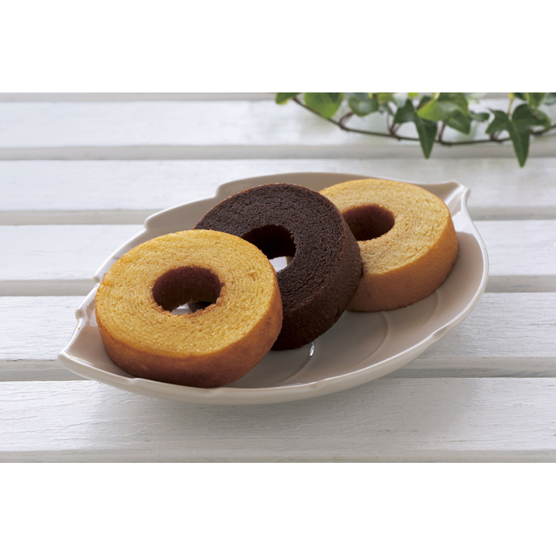 しっとりなめらかな食感のバウムクーヘンです。プレーン、メープル、ココアの3種類の味をアソートセットにしてお届けいたします。 |