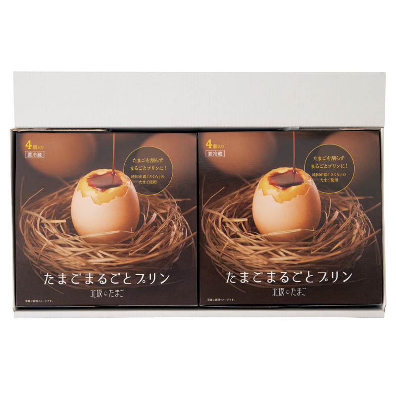 純国産鶏「さくら」から生まれた新鮮な卵「さくらたまご」を割らずに中身だけを攪拌し低温加熱法でプリン状にしました。生卵を割る要領で殻を半分に割り、添付の「シロップ」をかけてスプーンでお召し上がりください。