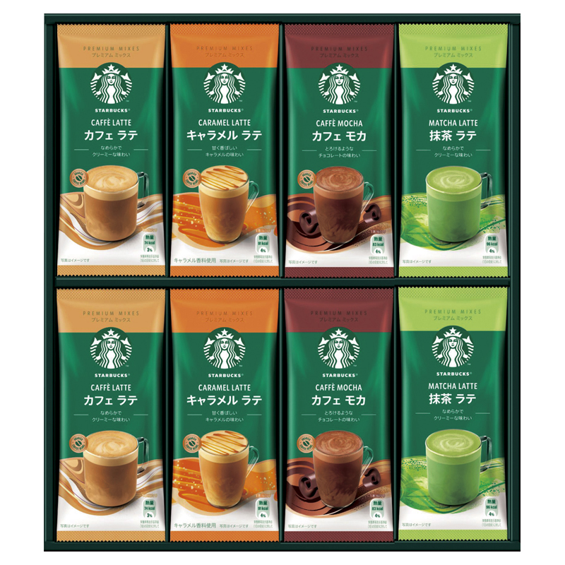 カフェ ラテ(約18g)・キャラメル ラテ(約23g)・抹茶 ラテ(約24g)・カフェ モカ(約22g)×各4 |