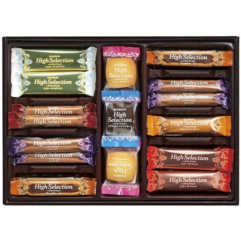 チョコリエール・エリーゼ(チョコ・ホワイト)×各4、バタークッキー・ルマンド×各6、ブラックココアクッキー・チョコインクッキー・チョコクレープ×各3
