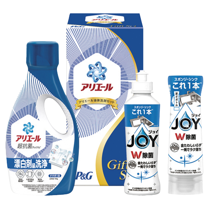 アリエールジェル(約700g)・除菌ジョイコンパクト逆さボトル(約290ml)・除菌ジョイコンパクト(約170ml)×各1